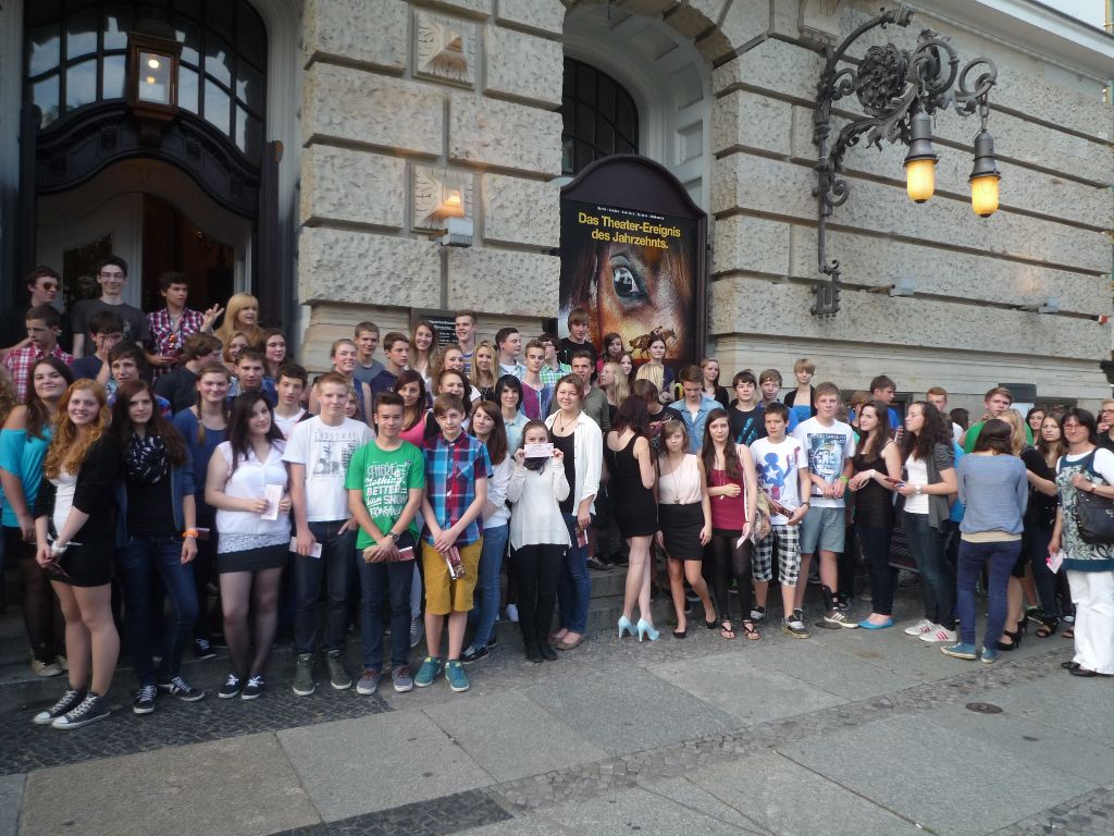 Schon zur Tradition unserer Schule gehört ein . In diesem Jahr fuhren wir am 04.07.13 mit zwei Bussen (84 Schüler) nach Berlin. Gegen 12.00 Uhr verließen alle die Busse am Potsdamer Platz, jeder konnte nun auf eigene Faust Erkundungen unternehmen. Am Abend erwartete uns der Höhepunkt des Ausfluges: „Tanz der Vampire“ im Theater des Westens, für alle ein ganz besonderes Erlebnis.