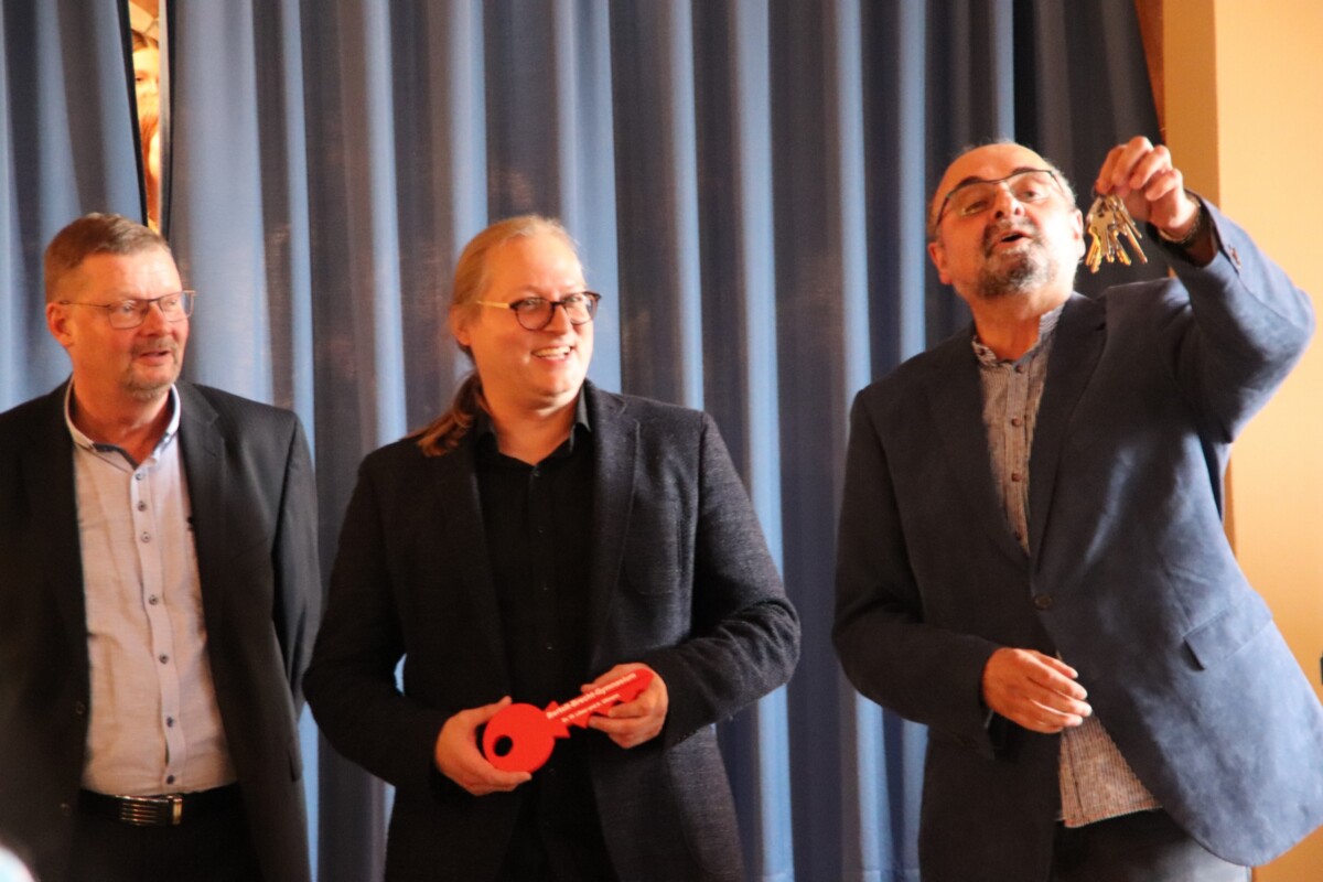 Mit Dr. Donat Schmidt als Schulleiter und Cornelia Krauß als stellvertretende Schulleiterin stehen zwei erfahrene Pädagogen aus den eigenen Reihen in den Startlöchern. Sie wurden in den vergangenen Wochen in ihre neuen, anspruchsvollen Aufgaben eingearbeitet. Zur Festveranstaltung erhielten sie den symbolischen Schlüssel für die beiden Häuser des Gymnasiums und die besten Wünsche, die erfolgreiche Arbeit ihrer Vorgänger mit ihrem jeweils eigenen Stil fortzusetzen.