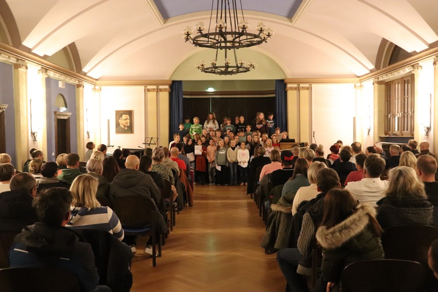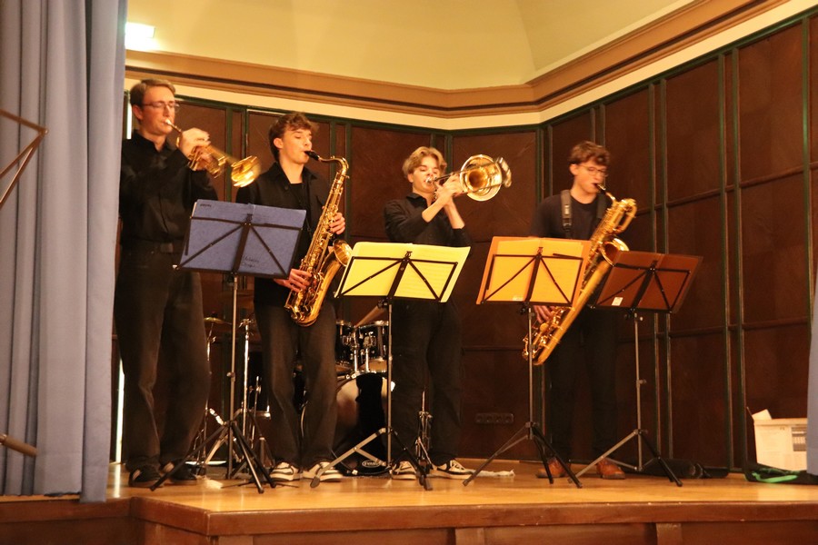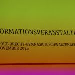 Es ist kaum ein halbes Jahr her, dass die Schülerinnen und Schüler der 5. Klassen zur Willkommensveranstaltung in der Aula zusammenkamen und für ihr erstes Klassenfoto auf die Bühne stiegen. Inzwischen zu einem festen Bestandteil unserer Schulgemeinschaft geworden, versammelten sie sich heute erneut im Festsaal, um gemeinsam mit ihrer Musiklehrerin Cornelia Schubert die Eltern jener Kinder mit einem musikalischen Gruß willkommen zu heißen, die im neuen Jahr an unsere Schule lernen möchten. Nach der offiziellen Begrüßung durch Schulleiter Dr. Donat Schmidt und Schülersprecherin Alessia Nehlen boten Schülerinnen und Schüler aller Jahrgänge ein abwechslungsreiches Programm aus musikalischen Beiträgen und spannenden Einblicken in das vielseitige Schaffen am Bertolt-Brecht-Gymnasiums. Unsere Schulsozialarbeiterin Theresa Warmbold informierte die Eltern über ihr ebenso herausforderndes wie wichtiges Aufgabenfeld, bevor Dr. Schmidt auf die organisatorischen Aspekte des Schulalltags einging.