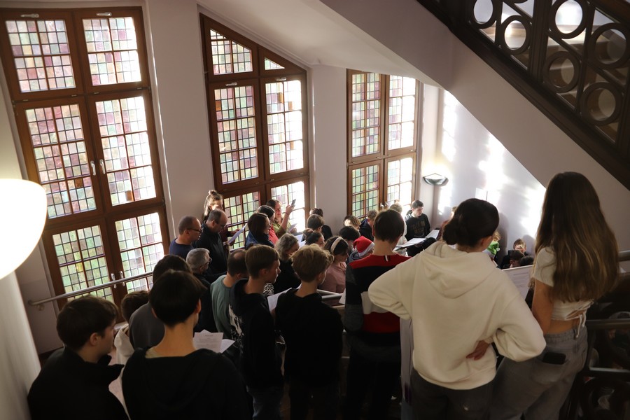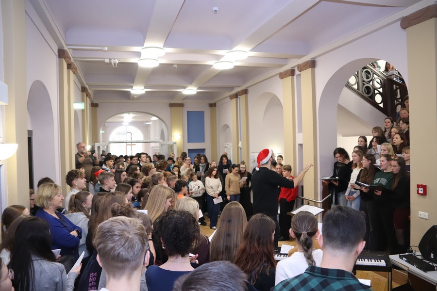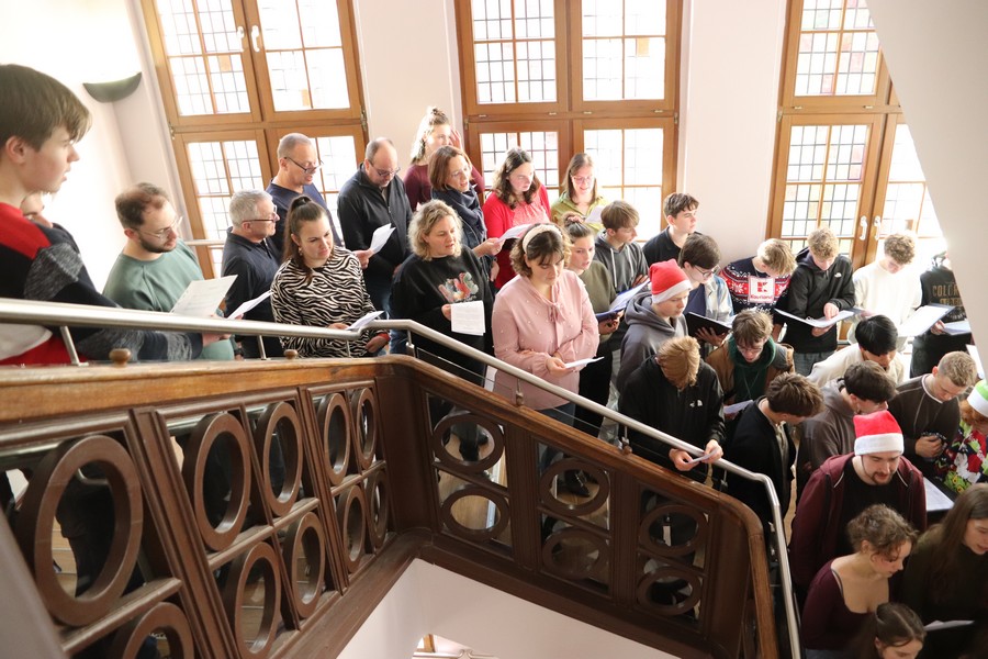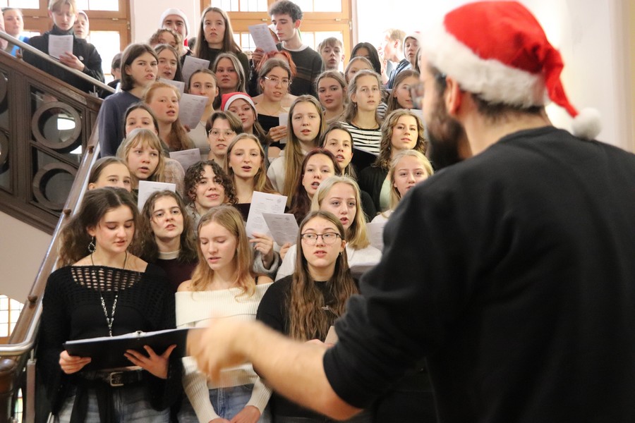 Weihnachten erinnert uns daran, wie wichtig Gemeinschaft, gegenseitiger Respekt und Zuversicht sind. Das Treppensingen am letzten Schultag des Jahres ist ein traditioneller Ausdruck dieser Werte, die an unserer Schule täglich gelebt werden. Auch der von unserem Schülerrat aufwändig gestaltete Weihnachtsmarkt in der Turnhalle, der dem heutigen Tag eine ganz besondere, wundervolle Note gegeben hat, ist ein Ausdruck der Möglichkeiten, die mit vieler Hände Arbeit geschaffen werden können.