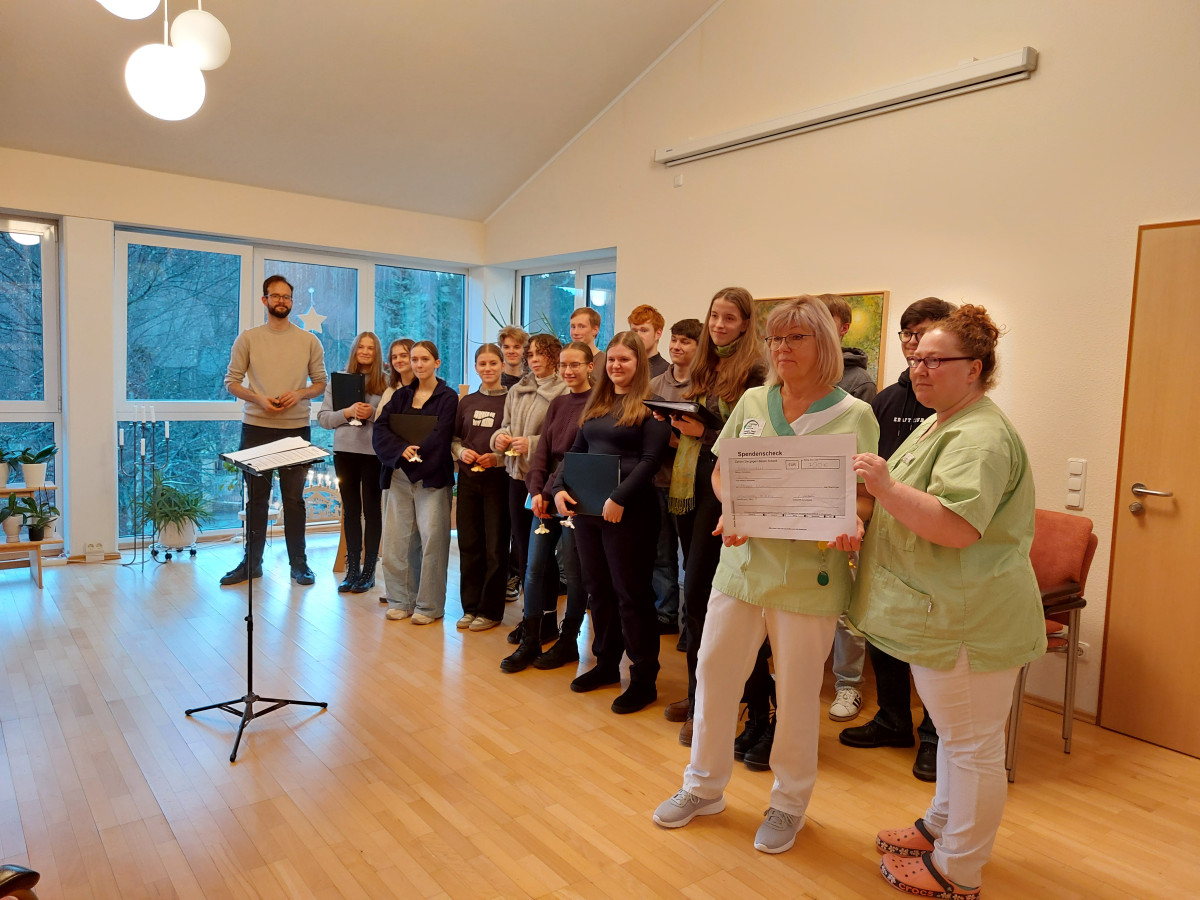 Mit einem wunderschönen Weihnachtskonzert bereitete der Schulchor den Bewohnern, deren Angehörigen und Mitarbeiten des Hospizes Erlabrunn einen musikalischen Nachmittag.